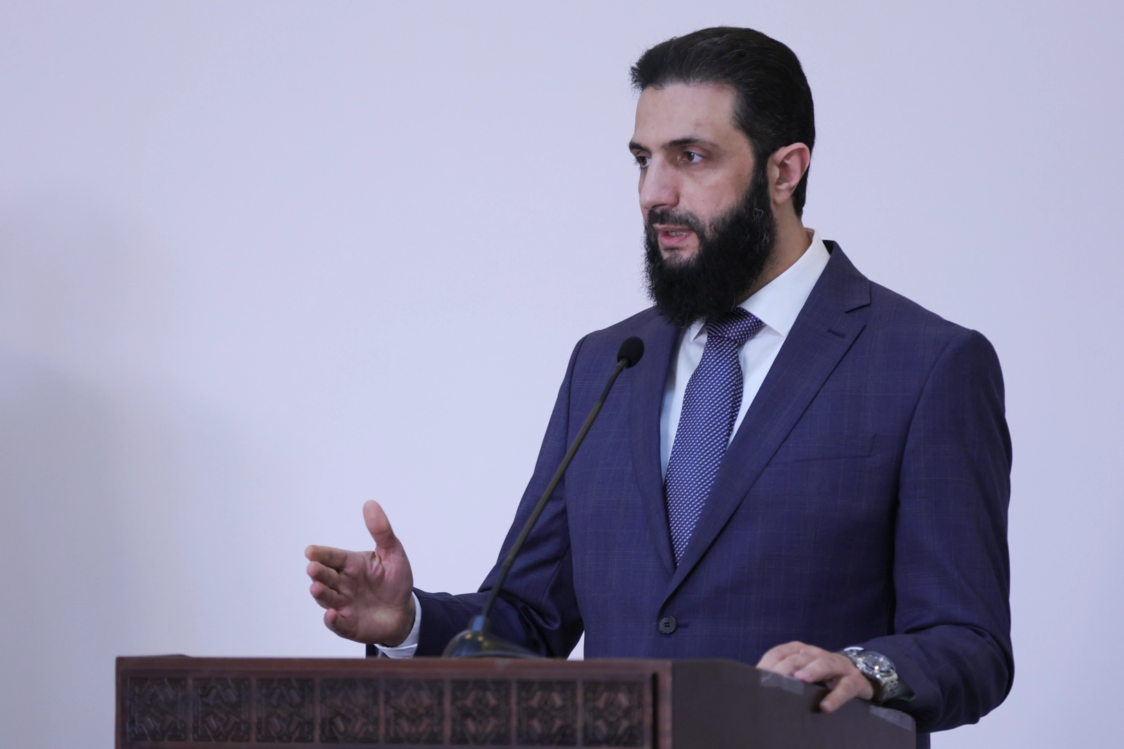 Suriye'nin yeniden inşası için devlet ile halkın her zaman birlikte çalışması gerektiğini vurgulayan Ahmed, "Ülkemiz yeniden halkımıza dönüyor. Devlet ve halk olarak bir olmalıyız. Sabır, dayanışma ve işbirliği ile kalkınma sürecine katkıda bulunmaya davet ediyorum." ifadelerini kullandı.