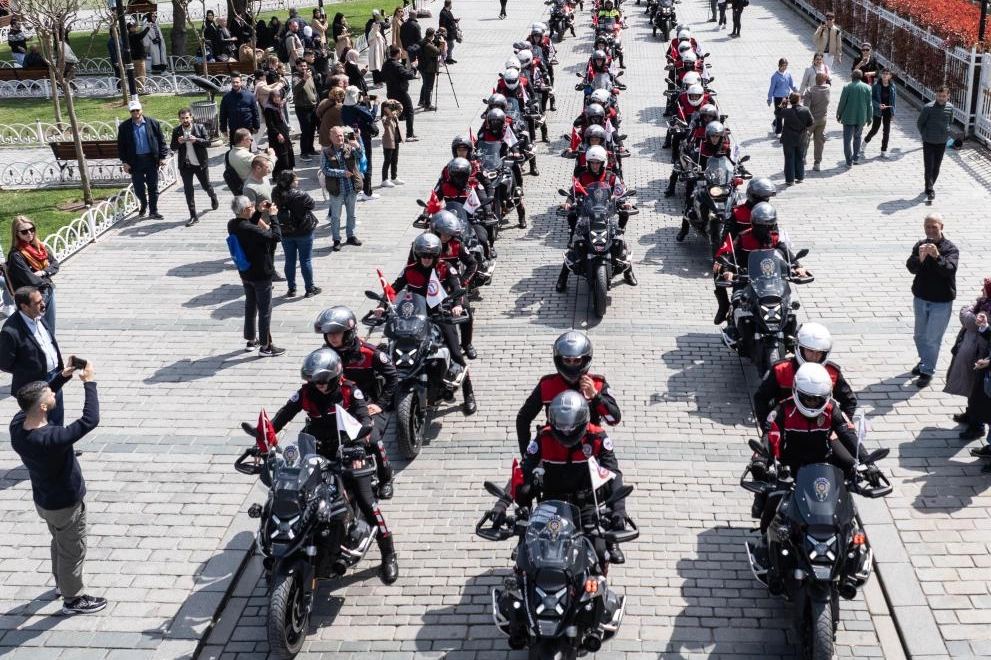 Motosikletli ekipler burada Alman Çeşmesi ile Dikilitaş arasındaki alana sıralandı.