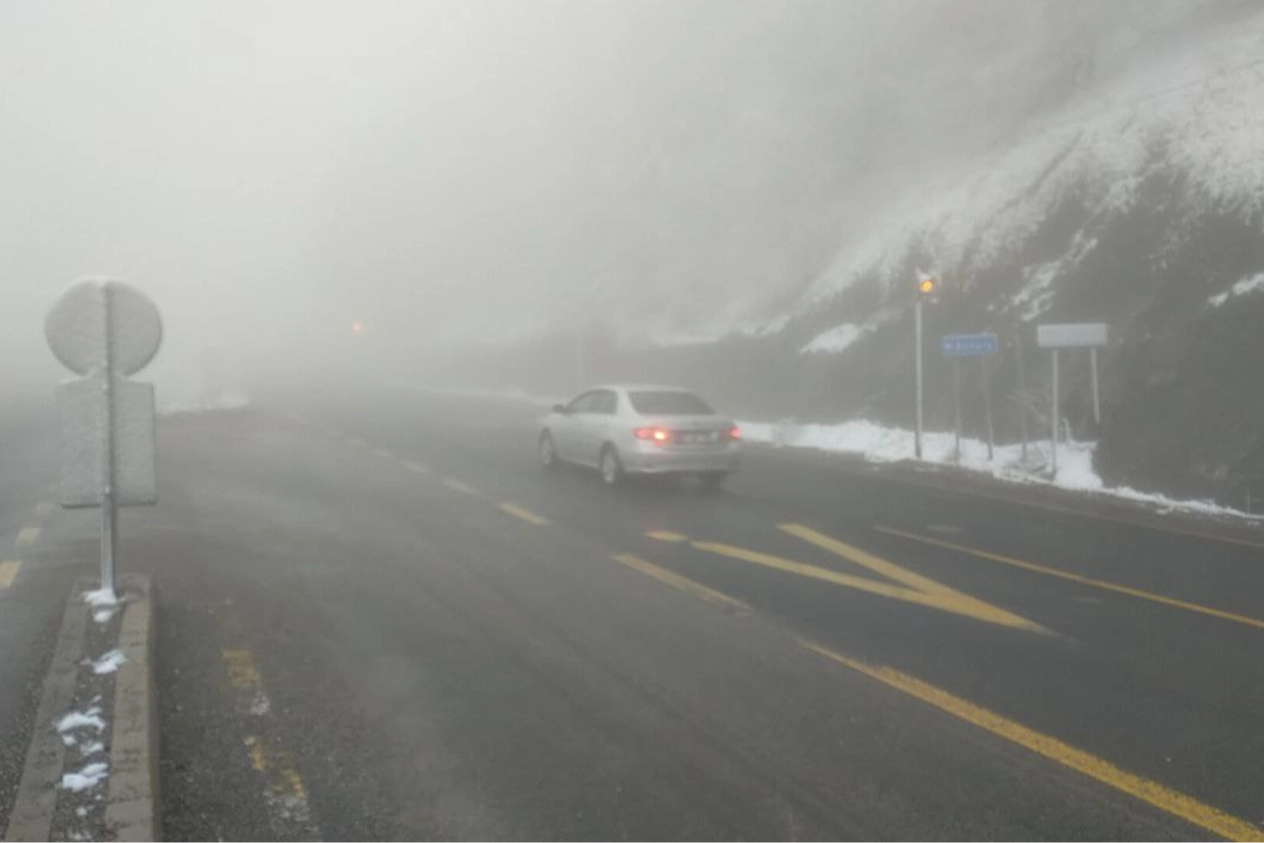 Yer yer beyaz örtüyle kaplanan bölgede Karayolları ekipleri karla mücadele çalışması yürütüyor. Bölgede görev yapan trafik ekipleri de sürücüleri kar yağışı ve sise karşı tedbirli olmaları konusunda uyarıyor.