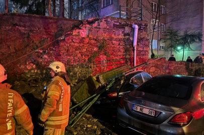 Beşiktaş'ta bir sitenin istinat duvarının çökmesi sonucu otoparktaki bazı araçlar kullanılamaz hale geldi.
