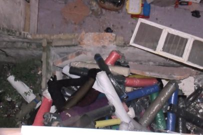 Seyitnizam Mahallesi G-26 Sokak'taki apartmanın kumaş deposu olarak kullanılan bodrum katındaki duvarın bir kısmı henüz belirlenemeyen nedenle çöktü.