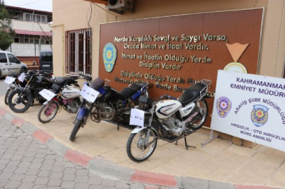 Kahramanmaraş'ta motosiklet hırsızlığı yapan şebeke, polisin sıkı takibi sonucu yakalandı. Çoğunluğu çocuk yaşta olan şüphelilerin çaldıkları motosikletlerin tanesini aracılara 100 liraya sattıkları belirlendi.