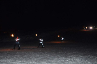 Kars'ta Sarıkamış şehitlerini anma etkinlikleri kapsamında meşaleli kayak gösterisi düzenlendi.
