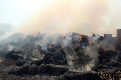 Şanlıurfa'da bir hayvan çiftliğinde çıkan yangında 150 ton saman balyası kül oldu.