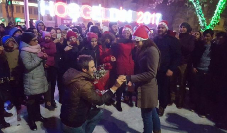 2016'nın son saniyelerinde Edirne'nin Keşan ilçesinde Cumhuriyet Meydanı'nda toplanan Keşanlılar, kar ve soğuk havaya aldırış etmeden yeni yıl coşkusunu dışarıda kutladı. Cumhuriyet Meydanı'ndaki kutlamalarda en dikkat çeken ise tam 00.00'da kız arkadaşı Cemile Gezgin'e yüzük ve çiçekle evlilik teklifinde bulunan Mustafa Serin oldu. Yeni yılı kutlamak üzere Cumhuriyet Meydanı'na erkek arkadaşı Mustafa Serin ile birlikte gelen Cemile Gezgin, her şeyden habersiz geri sayıma başlarken, erkek arkadaşı Mustafa Serin'in bir anda önünde diz çökmesiyle şaşkına uğradı.