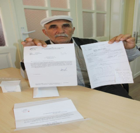 22 YILIN SONUNDA HÜSRANA UĞRADI Kadir Gökdelen yaptığı açıklamada, "1993 yılında SKK'dan emekli oldum. 1985'te SSK'lıyken 6 ay tarım ürünleri satmıştım. Bu sürede bilgim olmadan BAĞ-KUR'lu olmuşum. 1995 yılında bana SGK borcu çıkartıldı. Haksız bir borç olduğunu düşündüğüm için ödeme yapmadım. Beni icraya verdiklerinde evim bağım elimden alınmasın diye tarlamı satıp parayı ödedim. Sonra yaptığım araştırmada benden parası alınan günlerin SKK günlerim ile birleştirilmediğini, bana faydası olmayan günlerin parasını ödediğimi öğrendim. Paramın geri ödenmesi için mücadele başlattım. Çalmadığım kapı kalmadı. 22 yılın sonunda bu yazıyı aldım. Ödediğim paranın avukatlık, evrak gibi masraflarda eridiği 8.40 kuruş kaldığı, bununda zaman aşımına uğradığı için geri ödenemeyeceği söylendi. Yetkililerden mağduriyetimin giderilmesi için yardım istiyorum. Ben bu parayı tarlamı satarak ödedim" dedi. (Onur Erden /İHA)