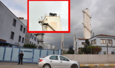 Hatay'ın Payas ilçesinde 16 aydır kapalı olan Nursan Çelik Fabrikası işçileri geriye dönük alacaklarının ödenmesi istemiyle 60 metre yükseklikteki oksijen kulesine çıkıp eylem yaptı.