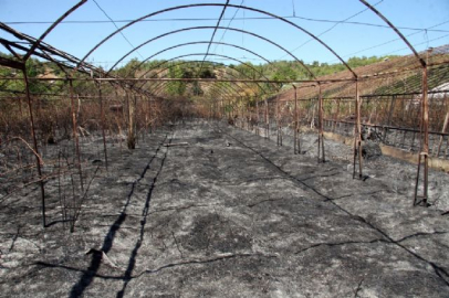 "ZARARIMIZIN KARŞILANMASINI İSTİYORUZ" Serası yanan Gülsüm Gökdere ise, zararının 15 bin TL olduğunu söyledi. Gökdere, "Yangın çıktığı haberi bize gelince hemen buraya geldik. İtfaiyeler söndürmüş. Biz daha bir ay önce yapmıştık serayı ve zararımız çok fazla. Şimdi yangında zarar gördüğü için tekrar değiştirmemiz lazım. 15 bin TL'lik bir zararımız söz konusu" dedi. (Adem Akalan / İHA)
