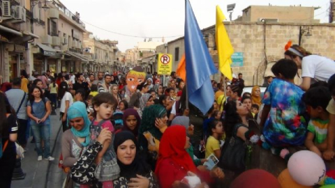 Mardin merkez Artuklu ilçesi tarihi Birinci Cadde'de Suriye ve Iraklı çocukların katılımları ile başlayan festival, renkli görüntülere sahne oldu. Cadde boyunca tahta bacak, yüzleri boyalı çocuklar, palyaço ve ellerde taşınan renkli şemsiyeler yerli ve yabancı turistlerin ilgisini çekti.