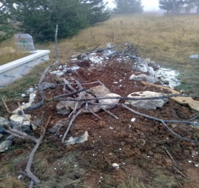 Kastamonu'da geçtiğimiz hafta mezar açmak isteyen ayı, bir hafta sonra aynı bölgede başka bir mezar daha açmak istedi. Mezar, ayıya karşı kireç ve taşlarla üzeri örtülerek korunmaya çalışılıyor.