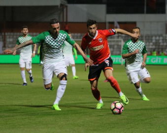 7. dakikada Adanaspor'da Ahmet Dereli yakın mesafeden şutunda top kaleci Lukac'dan döndü.