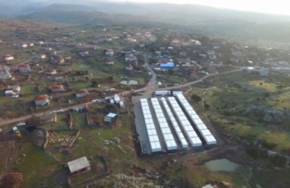 Drone ile çekilen görüntülerde, en fazla hasarın yaşandığı Yukarıköy'ün genel görünümü ve kurulan konteyner kentin deprem alanına konumu yer alıyor. Tuzla köyünde yapılan çalışmalar da görüntülere yansıyor.