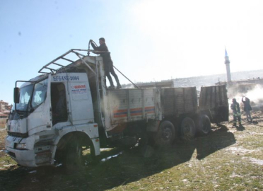 "CİDDİ MİKTARDA EKONOMİK ZARAR MEYDANA GELDİ" Yangın söndürüldükten sonrası itfaiye ekipleri yanmaya devam eden samanlar üzerinde soğutma çalışması yaptı. Yangının ardından kamyonunun dorsesinin neredeyse tamamı yanarken, sürücü kabini de alevlerden nasibini aldı. Kamyonun alev aldığını gören şoförün aracı boş araziye getirmesi olası bir facianın önüne geçti. Yangın esnasında beldede kısa süreli bir panik yaşandı. Belde sakinleri yangın söndürme çalışmalarını meraklı gözlerle seyrederken bazıları ise soğurma çalışmalarına destek verdi. Yangının ardından jandarma tarafından soruşturma başlatıldı. Ölen yada yaralanan olmadığı yangında ciddi miktarda maddi zarar meydana geldiği öğrenildi. (Gökten Ceylan /İHA)