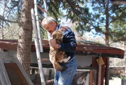 Kemer Mahallesinde çam ağacına çıkan kedinin aşağı inemediğini fark eden mahalle sakini harekete geçti. Ağaca merdiven yardımı ile çıkan Levent İçmez, kediyi mahsur kaldığı daldan indirebilmek için bir süre uğraştı. Kedinin korkması yardım çabalarını güçleştirirken, hayvansever vatandaşın kediyi incitmemek için verdiği çaba gözlerden kaçmadı. Kediyi sakinleştirerek kucağına alan vatandaş kedi ile birlikte merdivenden indi. Özgürlüğüne kavuşan kediye yiyecek verildi.