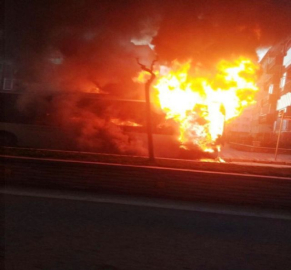 Çanakkale'de seyir halindeki özel halk otobüsü alev alev yandı. Yolcular can havliyle kendilerini dışarı atarken, otobüsün yarısı tamamen yandı. Edinilen bilgiye göre olay, akşam saat 17.45 sıralarında Atatürk Caddesi üzerinde meydana geldi. Ç2 hattında yolcu taşıyan Kadir Gürbüz idaresindeki 17 H 0090 plakalı Çanakkale Belediyesi denetimli özel halk otobüsünün motoru seyir halindeyken bir anda alev aldı. Şoför Gürbüz, otobüsü durağa çekip kapıları açtı. Yoğun dumanın kapladığı otobüsün içindeki yolcular kendilerini dışarıya attı. Olay yerine gelen Çanakkale Belediyesi İtfaiye Müdürlüğü ekipleri, yanan aracı kısa sürede söndürdü. Bölgede polis ekipleri çevre güvenliğini alarak, Atatürk Caddesi'ndeki yolu çift yönlü olarak trafiğe kapattı. Korku ve paniğe neden olan olayda ölen ya da yaralanan olmazken, itfaiye ekiplerinin soğutma çalışmasının ardından yarısı tamamen yanan otobüs çekici ile garaja çekildi. Çanakkale Belediyesi Ulaşım Hizmetleri Müdürü Hayati Gürses, olay yerine gelerek şoför Kadir Gürbüz'den bilgi aldı. Otobüsün yanma anlarını telefonuyla görüntüleyen 14 yaşındaki Saim Karaoğlu, "Ben anneannemden ders yapmaktan dönüyordum. Yolda otobüsü yanarken gördüm ve çok korktum, endişelendim. Cep telefonumun kamerası ile de o anları görüntüledim" diye konuştu. Yangınla ilgili inceleme başlatıldı. (Murat Yüksel - Utku Yaşar Cüce /İHA)
