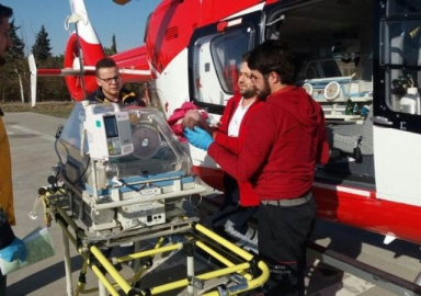 Trabzon Karadeniz Teknik Üniversitesi Tıp Fakültesi Hastanesinde 3 ay önce kalp ameliyatı olduğu öğrenilen 3 aylık Sinem H. adlı bebek, Giresun'daki hastanenin yoğun bakım servisinde tedavi altına alındı. Ateşi yükselen bebeğin Samsun'da bulunan özel bir hastaneye sevkine karar verildi. Bugün Sağlık Bakanlığına bağlı Trabzon 112 Acil Servise ait ambulans helikopter Trabzon'dan havalanarak Giresun'a gidip buradan Sinem H.'yi alıp Samsun 112 Acil Servis Hava Ambulansı pistine getirdi. Bebek buradan kuvöz içinde kara ambulansına nakledilip Samsun'daki özel hastaneye götürüldü.