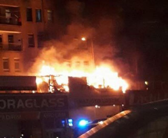 Ankara'da 10 katlı binanın en alt katında bulunan lastikçi dükkanında çıkan yangın, korku dolu anlar yaşanmasına neden oldu. Olay, saat 22.00 sıralarında Altındağ'da meydana geldi. Edinilen bilgilere göre, Zübeyde Hanım Mahallesi Turgut Özal Bulvarı üzerinde 10 katlı bir binanın giriş katındaki lastikçi dükkanının tente kısmında elektrik kontağından yangın çıktı. Kısa sürede büyüyen alevlerin tentedeki eski lastikleri tutuşturmasıyla yangın büyüdü. Rüzgarla birlikte yayılan alevler, dükkanın üzerindeki dairelere de sıçradı. Binadan yükselen alevleri gören vatandaşlar, itfaiye ekiplerine haber verdi. İhbar üzerine olay yerine çok sayıda polis, itfaiye ve sağlık ekibi sevk edildi. Binada mahsur kalan vatandaşların yardımına koşan itfaiye erleri, hızla daireleri tahliye etti. Bir yandan da alevlere müdahale eden itfaiye ekipleri, uzun uğraşlar sonucu yangını kontrol altına aldı. Binadan tahliye edilen apartman sakinleri, itfaiye ekiplerinin çalışmalarını telaşlı gözlerle izledi. İtfaiye erlerinin meşakkatli çalışması sonucu yangın tamamen söndürülürken, şans eseri can kaybı veya yaralanma olmadı. Yangın esnasında binanın arka cephesindeki düğün salonunda olduğunu söyleyen Berat Doğan, "Biz düğündeydik. Buraya geldiğimizde dükkanın üst kısmı yanıyordu. Alevler yayılınca evlere de sıçradı. İtfaiyeye haber verdik hemen. Dairelerin içinden alevler çıkmaya başladı. Ambulanslar geldi ama yaralı çıkmadı henüz" şeklinde konuştu. (Caner Ünver - Musa Erdoğan/İHA)