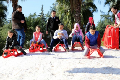 Antalya'da çocuklar kar topu oynayabilsin diye, yaylalardan kamyonlarla 200 ton kar getirildi. Sömestr tatilinde karı ilk defa gören yüzlerce çocuk, aileleriyle birlikte doyasıya eğlendi. Kepez Belediyesi, yarıyıl tatilinde 'Antalyalı çocuklar da kar topu oynayabilsin' diye yarıyıl Dokuma Park Kar Şenliği düzenledi. Antalya'nın karla bezenmiş dağ ve yaylalarından 10 kamyonla 200 ton kar sevkiyatı yapılan şenlikte kar görmeyen ve kar topu oynamanın keyfini hiç yaşamamış Antalyalı çocuklar aileleriyle birlikte gün boyunca gönüllerince eğlendi. Dokuma Park'ın otopark bölümünde oluşturulan oyun alanında, çocukların kayabilmesi için temin edilen 30 kızakla karda kaymanın keyfini de yaşayan çocuklar, kartopu oynayıp kardan adam yapmayı da ihmal etmedi. Mutlulukları gözlerinden okunan çocuklardan ilk defa kar görenler, karda oynamanın heyecanlı olduğunu söyledi. 12 yaşındaki Hüseyin Acaroğlu, "Normalde dağlara gittiğimizde soğuk oluyordu, burada normal günlük kıyafetlerimizle kar keyfi yapıyoruz" derken, Kilis'ten Antalya'ya gelen yeğenini kar şenliğine getiren bir vatandaş ise, "Yeğenim kar görsün istedik ama aşırı kalabalık, çok mutlu oldular" diye konuştu.