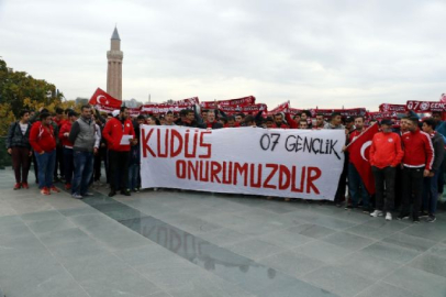 ABD Başkanı Trump'ın Kudüs'ü İsrail'in başkenti olarak tanıyacaklarını açıklamasının ardından Türkiye ve dünyada tepkiler çığ gibi artmaya devam ediyor. Antalyaspor taraftar gruplarından '07 Gençlik' Antalya Cumhuriyet Meydanı'nda toplanarak kararı protesto etti. Yaklaşık 100 kişilik grup adına 07 Gençlik Taraftarlar Derneği Başkanı Gürhan Güneyli basın açıklamasını okudu.