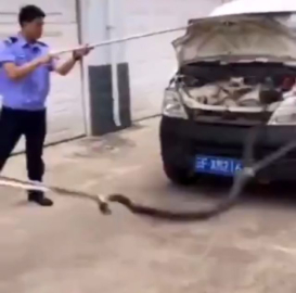 Çin'de bir adamın aracından tam 3 metrelik kral kobra cinsi bir yılan çıktı. Görevliler, özel aparatlarla, uzun süren bir çalışmanın sonunda dev yılanı aracın ön kısmından çıkarmayı başardı. Dev yılan, ardından bir torbaya konularak götürüldü. Doğadaki en büyük zehirli yılan olan kral kobranın adamın aracına nereden ve nasıl girdiğiyse bilinmiyor.