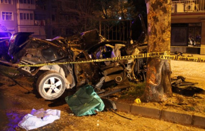 Kocaeli'nin Gölcük ilçesinde aşırı sürat nedeniyle kontrolden çıkan otomobil, yol kenarındaki ağaca çarptı, 1 kişi öldü 1 kişi de yaralandı. Kaza yapan aracın motoru ise 150 metre ileride bulundu. Kaza Gölcük Donanma Mahallesi D-130 Karayolu İzmit istikametinde sabah 04.30 sıralarında meydana geldi. Edinilen bilgiye göre Haşmet K.(28) idaresindeki 27 V 5630 plakalı otomobil, aşırı sürat nedeniyle Donanma ışıklar mevkiinde kontrolden çıktı. Kontrolden çıkarak savrulan otomobil yok kenarındaki çınar ağacına çarparak parçalandı. Çarpmanın etkisiyle aracın motoru 150 metre öteye savrulurken, araç içindeki sürücü Haşmet K. ve Veli B. Bulundukları yerde sıkıştı. Kazayı gören çevredeki insanların haber vermesi üzerine olay yerine polis, 112 Acil Sağlık ve itfaiye ekipleri sevk edildi. Kısa sürede olay yerine gelen sağlık ekiplerinin ilk yaptığı incelemede ise Veli K.'nın olay yerinde öldüğü belirlendi. Daha sonra olay yerine gelen itfaiye ekiplerince sıkıştığı yerden çıkarılarak 112 ekiplerine teslim edildi. İlk müdahalesi olay yerinde yapılan Haşmet K., ambulansla Gölcük Necati Çelik Devlet Hastanesine kaldırıldı. Ağır yaralı olduğu belirlenen Haşmet K., buradaki müdahalenin ardından ise Kocaeli Devlet Hastanesine sevk edildi. Kazada olay yerinde ölen, üzerinden ilk etapta kimlik çıkmayan ancak yaralı sürücünün Veli B. Adlı kişi olduğunu söylediği ölen şahsın cesedi savcı incelemesi sonrası cenaze aracına alındı. Veli B.'nin cesedi daha sonra Gölcük Necati Çelik Hastanesi morguna kaldırıldı. Kazada çarptığı çınar ağacının şeklini alarak hurdaya dönen, hız göstergesi 120 kilometrede kalan otomobil ve metrelerce ileri fırlayan motoru ise çekici ile yoldan kaldırıldı. Polis ekipleri kaza hakkında inceleme başlattı. (Gürcan Yılmaz/İHA)