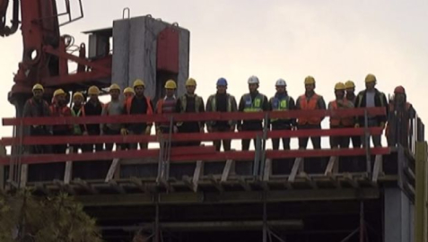 Atatürk'ün ölümünün 79.yıl dönümünde inşaatta çalışan işçiler saatler 09:05'i gösterdiğinde işlerini bırakarak saygı duruşunda bulundu.