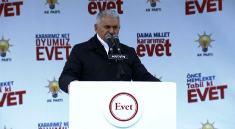 Başbakan Binali Yıldırım, hayır kampanyası yürüten Avrupa'yı eleştirerek, "Avrupa işine bak sen işine. Türkiye'nin işlerine burnunu sokma" dedi. Ardahan'dan helikopterle Artvin'e gelen Başbakan Binali Yıldırım, Artvin Valiliği önünde vatandaşlara hitap etti. Başbakan Yıldırım, yaptığı konuşmada "Ülke olarak millet olarak son derece tarihi günlerden geçiyoruz. Milletimiz için yeni bir çığır açacak yeni bir değişime hazırlanıyoruz. 16 nisan bu değişimin tarihi olacak. Söz sizin, karar sizin. Son sözü söyleyecek sizsiniz. Mühür elinizde. İnşallah 16 Nisan'da sandığa gidiyoruz. Türkiye için mührü beyaz alana, 'evet'e basıyoruz" dedi.