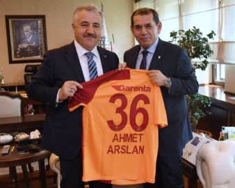 Galatasaray Spor Kulübü Başkanı Dursun Özbek, Ulaştırma, Denizcilik ve Haberleşme Bakanı Ahmet Arslan'ı makamında ziyaret etti. Bakan Arslan ve Özbek, Galatasaray futbol takımı hakkında sohbet etti. Keyifli sohbetin ardından Özbek, Bakan Arslan'a 36 numaralı arkasında Ahmet Arslan yazılı bir forma takdim etti.