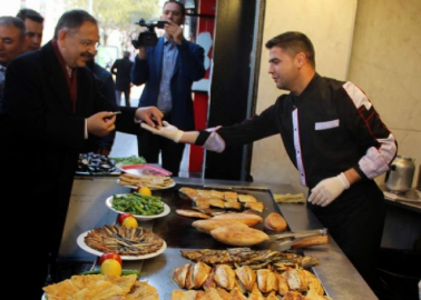 Kayseri'de bulunan Çevre ve Şehircilik Bakanı Mehmet Özhaseki, esnaf ziyareti yaptı, ikram edilen balıktan tattı.