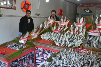 "VATANDAŞ BALIK FİYATLARI YÜKSEK OLMASI NEDENİYLE TALEP GÖSTERMİYOR" İthal gelen balıklarda fiyatların arttığını ifade eden Özpamuk, "İthal palamutun fiyatı, doların yükselmesinden dolayı arttı. İthal palamut diğer zamanlarda 3 tane 10 TL iken şu anda tane 5 TL'ye satılıyor. Vatandaş balık fiyatları yüksek olması nedeniyle talep göstermiyor. Şubat ve Mart ayında fiyatlar artmaya devam edecek. Nisan 15'te de av yasağı başlıyor. Şu anda en çok hamsiye talep var. Onun da fiyatı uygun olduğu için. Fiyatlar; sarıkanat 50 TL, tekir 30 TL, mırlan 40 TL, uskumru kilo 15 TL, hamsi 15 TL, levrek-çupra 30 TL, yerli Karadeniz soman kilo 25 TL" ifadelerini kullandı. (Kaner Akaner/İHA)