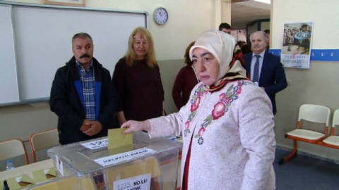 Başbakan Binali Yıldırım'ın eşi Semiha Yıldırım, Ankara Halide Edip Adıvar Ortaokulu 1235 numaralı sandıkta oyunu kullandı.