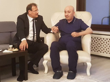 Başbakan Yardımcısı Hakan Çavuşoğlu, 15 Temmuz darbe girişimi sırasında darbeciler tarafından başından vurulduktan sonra yaşama tutunan Emniyet Genel Müdürlüğü Terörle Mücadele (TEM) Daire Başkanı Turgut Aslan'ı evinde ziyaret etti.
