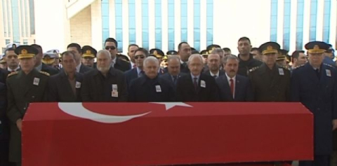 Başbakan Binali Yıldırım, yılbaşı gecesi birlikte yemek yediği ve Suriye El Bab'da şehit olan Uzman Çavuş Mahmut Uslu için Ankara'da Ahmet Hamdi Akseki Camii'nde düzenlenen cenaze törenine katıldı.