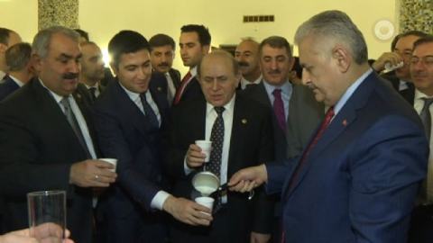 Başbakan Binali Yıldırım, AK Parti İstanbul Milletvekili ve eski Anayasa Komisyonu Başkanı Burhan Kuzu ve milletvekillerine cezvedeki sıcak sütten ikram etti. Vekiller de Yıldırım'ın ikram ettiği sıcak sütün tadına baktı.