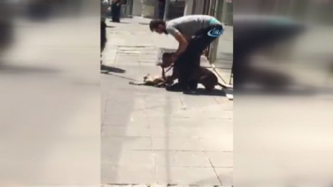 Ankara'da başıboş dolaşan pitbull cinsi bir köpek dehşet saçtı. Boynundan yakaladığı sokak kedisini yere vurarak boğan köpeği zapt etmeye çalışan vatandaşlar zor anlar yaşadı. Bir vatandaşın cep telefonu kamerasıyla kaydettiği görüntülere dehşet anları saniye saniye yansıdı. Kediyi kurtarmaya çalışan iki kişinin köpeğin başına sopayla vurması da görüntülere yansıdı.