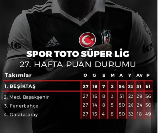 Beşiktaş, ezeli rakibi Galatasaray'ın göndermesine ligdeki puan durumuyla cevap verdi. UEFA Avrupa Ligi Çeyrek Finalinde, Fransız temsilcisi Olimpik Lyon'a penaltılarla 7-6 kaybederek elenen Beşiktaş'a, ezeli rakibi Galatasaray'dan kupalı gönderme gelmişti. Sarı-kırmızılılar, sosyal medyada, 2000 yılında aldıkları UEFA Kupası fotoğrafını paylaşarak, "Günaydın Galatasaray Ailesi! #TarihBirKereYazıldı" notunu düşmüştü.