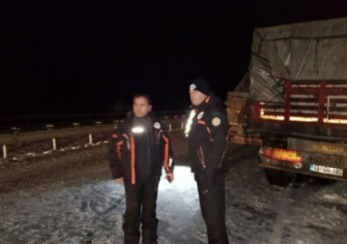 İstanbul-Eskişehir yolu tünel çıkışı Örenköy mevkisinde yolun buzlanması sebebiyle makas atan TIR, İl Afet ve Acil Durum Müdürlüğü (AFAD) ekiplerinin de çalışmalarıyla kurtarıldı.