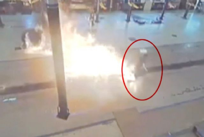 Ancak bir anda parlama oldu ve temizlik görevlisi alevlerin içinde kaldı. Talihsiz adam canını zor kurtarırken yangının yere dökülen akaryakıttan kaynaklandığı öğrenildi.