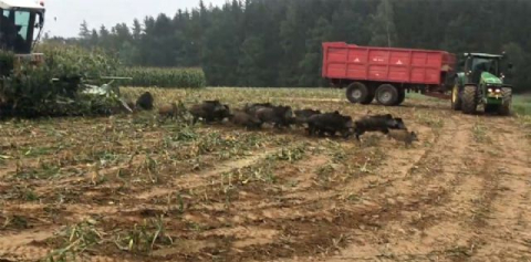 Çek Cumhuriyetinde bir tarlada yapılan söküm işlemi sırasında şok eden bir hadise yaşandı. Makinenin söküm yaptığı kısımdan bir yaban domuzu sürüsü çıktı. Yaban domuzları hızla bölgeden kaçarken, o anlarsa amatör kameraya yansıdı.