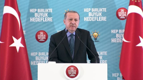 Cumhurbaşkanı Erdoğan, 'Türkiye'nin, Suriye ve Irak kaynaklı tehditlerle köşeye sıkıştırılmasına izin vermeyeceğiz. Bize husumet besleyenlere sözümüzü ise burada bir kez daha tekrarlayayım, bir gece ansızın gelebiliriz' dedi.
