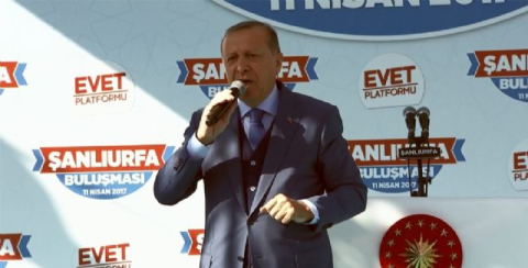 Cumhurbaşkanı Erdoğan, idam cezasının geri getirilmesine CHP destek vermezse bunun için de referanduma gidilebileceğini söyledi. Cumhurbaşkanı Recep Tayyip Erdoğan bugün Şanlıurfa'daydı. 11 Nisan Meydanında büyük ve coşkulu bir kalabalığa hitap eden Erdoğan, sık sık, izdiham yaşanmaması için uyarılarda bulundu. Kabalığın "İdam isteriz sloganları" üzerine Erdoğan, bu konudaki fikrini daha önce beyan ettiğini hatırlatarak, "16 Nisan'da 'evet'le sandıklar patladığı takdirde hemen ardından parlamentoya idamla ilgili karar taslağı inşallah gelecek. Sayın Bahçeli 'evet' diyor, Sayın Yıldırım aynı, Kılıçdaroğlu da geçenlerde eğer yanlış duymadıysam o da 'Ben de desteklerim' dedi. Herhalde destekler değil mi? Desteklemezse ne olur? Bir referandum da onun için yaparız" dedi. Erdoğan'ın hedefinde, 15 Temmuz gecesi Atatürk Havalimanındaki görüntüleri ortaya çıkan Kemal Kılıçdaroğlu da vardı. Cumhurbaşkanı, "Ey Kılıçdaroğlu, tanklar orada. Seni ışıldaklı bir araba geliyor, tankların önünden alıyor. Sen orada darbecilerle görüşüyorsun. Ondan sonra o arabaya atlayıp, Bakırköy Belediye Başkanı'nın evine gidiyorsun" dedi ve neden kaçıp gittiğini sordu. Cumhurbaşkanı Erdoğan, Türkiye'nin yıllardır parlamenter sistemin sorunlarıyla uğraştığını da ekleyerek, "Türkiye sistem değişimini keşke daha önce yapsaydı. Bu gecikmenin bedelini hep birlikte ağır bir şekilde ödedik" diye konuştu.