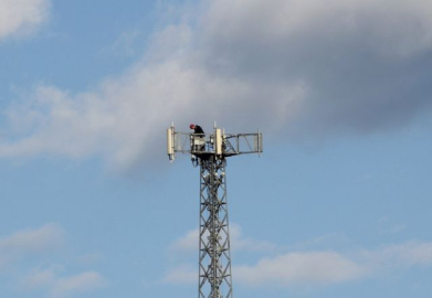 Bakım onarım teknisyenleri, yaklaşık 100 metre yükseklikteki baz istasyonlarının tepesinde çalışıyor.