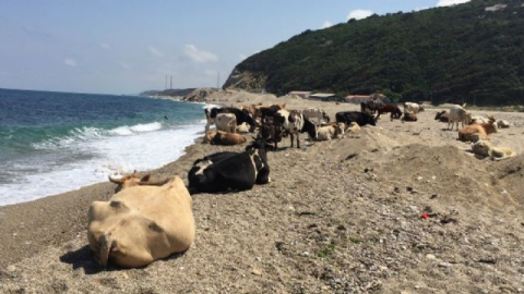 Hafta sonunu değerlendirmek için Çatalca'da bulunan Çilingöz plajına gelen vatandaşlar plajda güneşlenen inekleri görünce şaşkınlıklarını gizleyemedi. Karadeniz sahilinde yer alan Çilingöz plajının bu seferki misafirleri yaklaşan kurban bayramı öncesi inekler oldu. Hava sıcaklığının mevsim normallerinin üzerine çıkmasıyla birlikte plaja inen inekler, aynı zamanda orman ve deniz keyfini bir arada yaşadı.