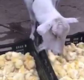 Civciv yiyen keçi görüntülere böyle yansıdı. Çin'de civcivlerle dolu kasaların başında bir keçinin olduğu görülüyor. İnatçılığıyla bilinen hayvan, kasadan ağzına aldığı civcivleri çiğneyerek mideye indiriyor. Bu ilginç anlar görüntülere de anbean yansıyor.