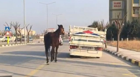 Manisa'nın Yunusemre ilçesinde bazı kişi ya da kişilerce bir kamyonetin arkasına bağlanarak kilometrelerce koşturulan atı gören vatandaşlar tepki gösterdi. Akıllara durgunluk veren olay bir araç sürücüsü tarafından saniye saniye kaydedildi. Manisa'da bir süre önce şehir içerisinde çukura düşüp ölen at ile sarsılan hayvanseverler, bu kez bir kamyonetin arkasına bağlanarak şehir merkezinde koşturulan at için tepki gösterdi. Yunusemre ilçesi Güzelyurt Mahallesi'nde bir atın kamyonetin arkasına bağlanarak kilometrelerce koşturulmasına şahit olan vatandaşlar şehir içerisinde gerekli denetimlerin artırılmasını ve hayvanlara karşı işlenen bu tür suçların cezasız kalmamasını istedi. Duyarlı bir hayvansever tarafından araç içerisinde videoya alınan o anlar hayvana yapılan eziyeti tüm çıplaklığıyla gözler önüne serdi.