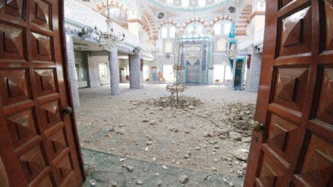"MECBUR YERE KAPAKLANDIK" Olay sırasında caminin avlusunda bulunan Avni Eryılmaz ise "Cami avlusunda tek başıma oturuyordum daha sonra iki tane amca geldi onlara çay almak için çay ocağına girdim. Çayları tam onlara verdiğim sırada büyük bir gürültüyle taşlar üzerimize döküldü. Mecbur yere kapaklandık. Ondan öncesinde kıyamet gibi yağmur yağıyordu yıldırımın düşmesiyle minare parçalandı, daha sonra büyük bir ses geldi caminin içinde devasa bir avizemiz vardı o düşmüş. Cami tamamen üzerimize yıkılacak sandık" şeklinde konuştu. (Ufuk Kıvık / İHA)