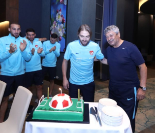 A Milli Takım'ın Antalya'daki kampında akşam yemeği sonrasında milli futbolcu Caner Erkin'in doğum günü kutlandı.