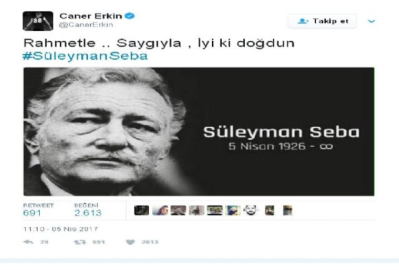 Caner Erkin, Süleyman Seba'yı unutmadı