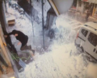 Edinilen bilgiye göre, merkez Molla Fenari Caddesi üzerinden hazır giyim dükkanı bulunan ve isminin açıklanmasını istemeyen esnaf, işyerinin önünde durduğu sırada, çatıdan kopan kar kütlesinin üzerine düştüğünü fark ederek can havli ile işyerine atlayarak kar kütlesinin altında kalmaktan son anda kurtuldu. Esnafın, kar kütlesinin altında kalmaktan atlayarak kurtulması ise güvenlik kamerasına yansırken, film sahnesini de aratmadı.