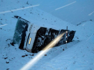 Sivas'ın Koyulhisar ilçesinde cenazeye gidenleri taşıyan otobüs devrildi. Kazada 16 kişi yaralandı. Kaza, Koyulhisar ilçesi Yemişli mevkisinde meydana geldi. Edinilen bilgiye göre, bir yakınlarının Ağrı'daki cenazesine katılmak üzere İstanbul'dan yola çıkanları taşıyan Özdemir İsmiçoğlu (49) yönetimindeki 34 UU 4782 plakalı otobüs, D-100 karayolunun Koyulhisar ilçesi Yemişli mevkisinde kar yağışı ve buzlanma nedeniyle kontrolden çıkarak devrildi. Kazada sürücü ile otobüste bulunan Kerem (33), Sefer (44), Ayşe (22), Ummugülsüm (20), Mehmet Hanife (46), Adile (36), Kıymet (74), Murat (22), Gülten (42) ve Musa Demir (5) ile Tahsin Engiz (44), Hediye Yiğit (47), Bediha Engiz (58), Sadık Aydoğmuş (36) ve Allahverdi Yiğit (55) yaralandı. Ambulanslarla Suşehri Devlet Hastanesine kaldırılan yaralılardan Sadık Aydoğmuş, daha sonra Sivas'a sevk edildi. Öte yandan yaralıları taşıyan bir ambulans ile tır da kaza bölgesinde çarpıştı. Kazada ambulansta hasar oluşurken, içerisindeki yaralılar ise bölgeye sevk edilen başka bir ambulansla hastaneye götürüldü. Kaza ile ilgili inceleme başlatıldı. (Nevzat Yücel /İHA)